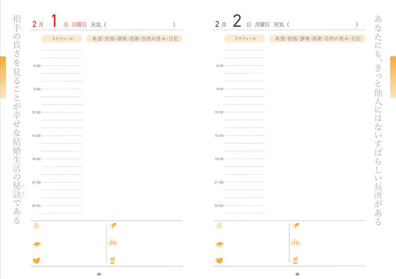 そんな日時計と同様、毎日の明るい出来事や希望を記録するために製作された日記帳が『日時計日記』です。