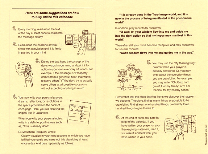 英語『光明生活の日訓』は、日々の指標として毎日の生活に活力を与える「真理の言葉」31日分の日めくりカレンダー。表面は英語、裏面は日本語で掲載されています。職場や地域など身近にいる外国人の方々にお勧めです。本製品を最大限に活用するための方法を示した解説書付き。 ↓↓画像をクリックすると拡大表示できます↓↓【表面:英語】 【裏面:日本語】 【解説書の一部】