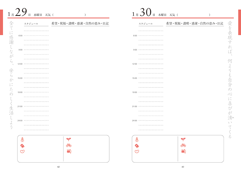 2007年から毎年発刊されている同日記帳は、人生の光明面のみを見る「日時計主義」の生き方を実践するために、多くの方に愛用されています。